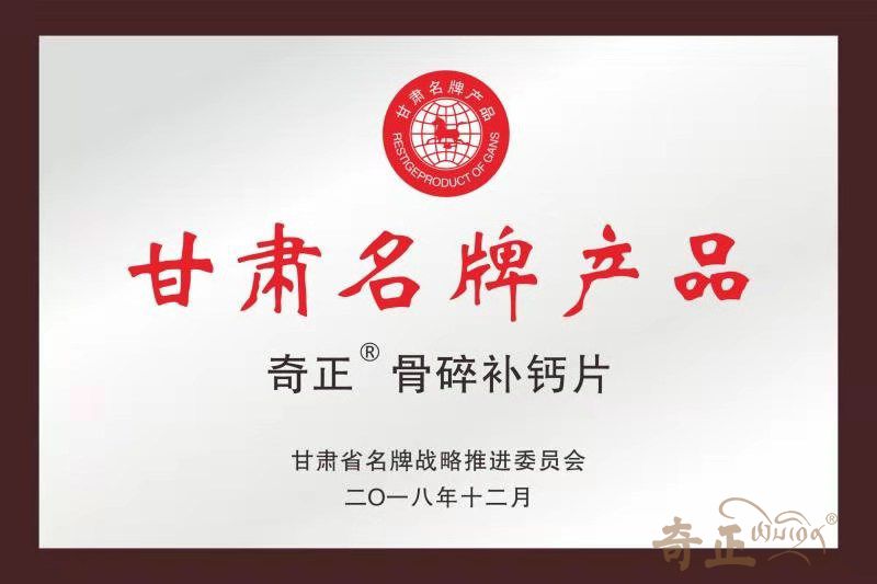 奇正骨碎補(bǔ)鈣片獲甘肅省名牌產(chǎn)品