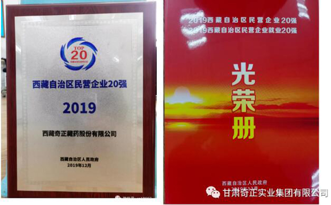 自治區(qū)政府為鼓勵、支持、引導、保護民營企業(yè)經(jīng)濟發(fā)展,西藏自治區(qū)非公經(jīng)濟工作領導小組自2019年4月啟動 “西藏自治區(qū)民營企業(yè)20強”和“西藏自治區(qū)民營企業(yè)就業(yè)20強”評選工作,備受當?shù)貥I(yè)界關注。經(jīng)過領導小組辦公室初評、領導小組成員單位共同審議等多項程序,奇正藏藥獲評“2019西藏自治區(qū)民營企業(yè)20強”?!?