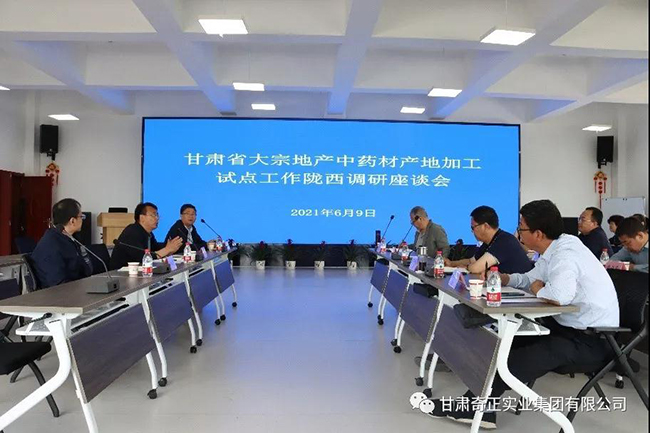 2021年6月9日,甘肅省大宗地產(chǎn)中藥材產(chǎn)地加工試點工作隴西調(diào)研座談會,在隴西奇正藥材有限責任公司召開。