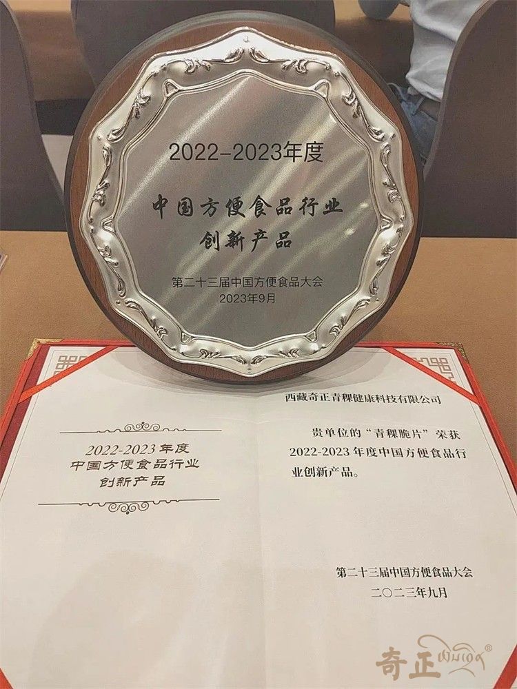 會上,奇正“青稞脆片”榮獲“2022—2023年度中國方便食品行業(yè)創(chuàng)新產(chǎn)品”,這是奇正青稞脆片繼中國綠色食品認(rèn)證和低GI食品認(rèn)證后,獲得的又一項殊榮。