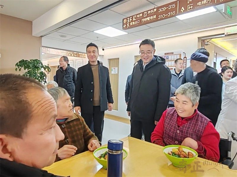 調(diào)研過程正趕上長(zhǎng)者們的用餐時(shí)間,領(lǐng)導(dǎo)們步入用餐區(qū),溫馨愉悅的氛圍撲面而來,老人們圍坐餐桌旁,飯菜熱氣騰騰,營(yíng)養(yǎng)搭配豐富。各級(jí)領(lǐng)導(dǎo)與老人們紛紛交流,關(guān)切詢問飯菜是否可口以及日常生活情況,茍廳長(zhǎng)認(rèn)真查看了奇正康養(yǎng)在照護(hù)方面采取的詳細(xì)舉措,了解護(hù)理人員對(duì)于長(zhǎng)者的“九防”和“五?!惫芾砝砟?,詳細(xì)詢問長(zhǎng)者離院管理等方面的管理措施。同時(shí),對(duì)于康養(yǎng)院照護(hù)工作中開展的培訓(xùn)、演練、長(zhǎng)者照護(hù)等日常工作給予了高度肯定。
