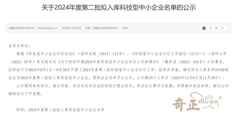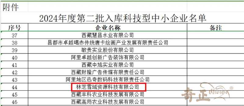 2024年11月7日西藏自治區(qū)科學(xué)技術(shù)廳發(fā)布了“關(guān)于2024年度第二批擬入庫科技型中小企業(yè)名單的公示”,科技型中小企業(yè)認(rèn)證是對(duì)企業(yè)技術(shù)實(shí)力和經(jīng)營(yíng)管理能力的有力肯定,林芝雪域資源科技有限公司獲此殊榮。